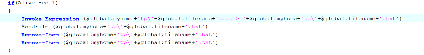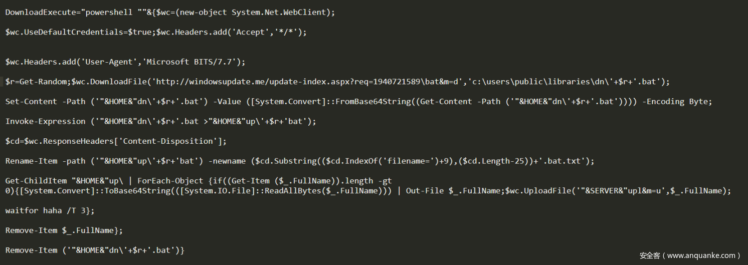 虽然由于C2已失效的无法获取到这里的bat文件,但是根据后续代码来看,这里的bat应该是一个简单的信息收集脚本。