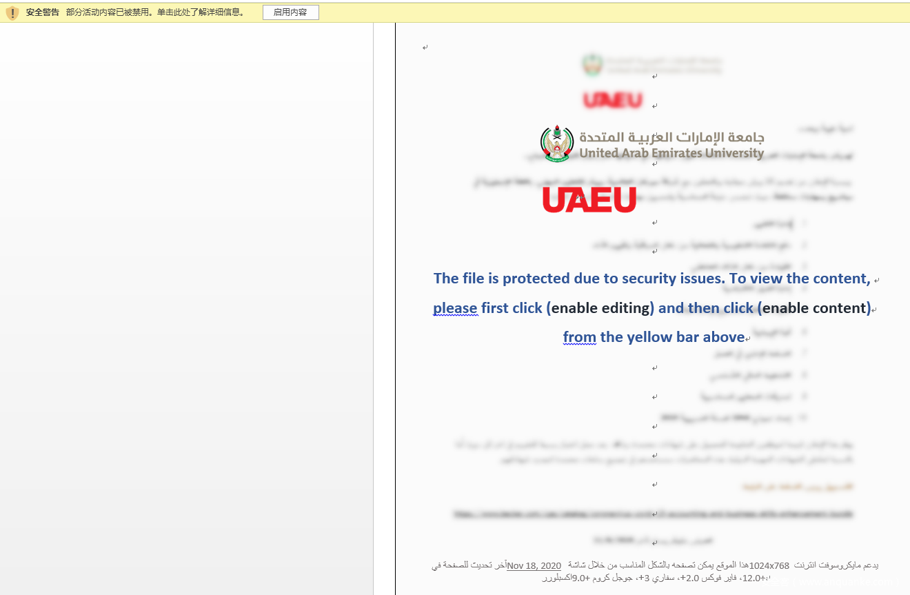 原始样本通过仿冒office官方来提醒用户启用恶意宏代码。