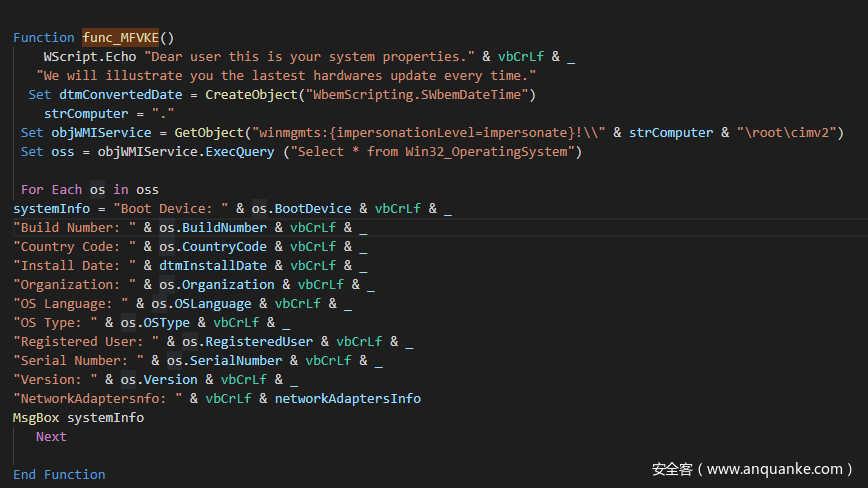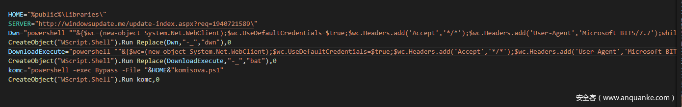 vbs文件头部预定义了一些变量,顺便调用了几个函数进行初始化: