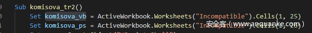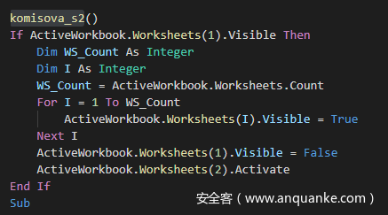 宏代码执行后,会在WorkBook_Open方法中调用komisova_tr2和komisova_s2函数执行关键功能