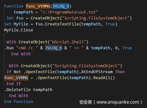 func_VYMMG函数功能是通过cmd执行参数传递进来的指令并输出保存到out.txt中