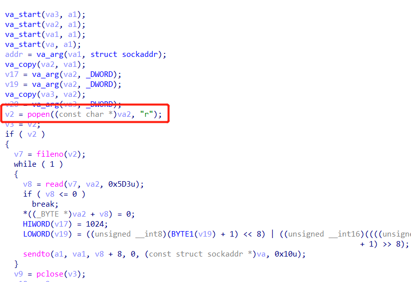 完成绑定后,程序会在0x00401E5C处调用operate_loop函数。该函数用来完成整个后门命令数据的接收、执行传动及执行结果的回传。