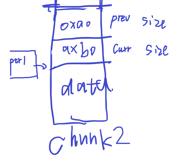 需要溢出chunk2的prev size和curent size两个字段,分别赋值为0xa0,和0xb0