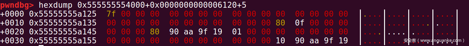 而我们如果要申请出这一段空间,那么首先要符合的要求就是size相同,我们这里考虑利用程序在初始化中的\x7f来作为size标志(就像绕过fastbins size check一样),这样在我们申请0x68大小的堆块的时候,就可以取出我们伪造的堆块。