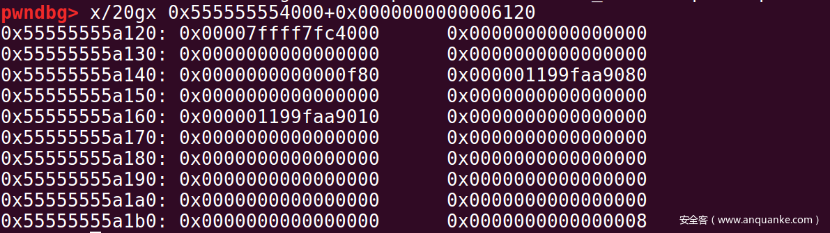 这道题是先使用mmap申请一块0x1000长度的空间,然后自主管理这段空间,而问题也在于这个0x1000是有限的长度,是会被分配干净的,程序并没有做分配完之后的相关逻辑操作。