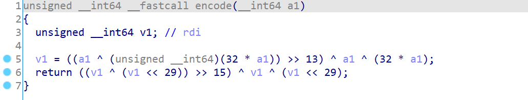 v1 = (LShR((a1 ^ (32 * a1)), 13)) ^ a1 ^ (32 * a1)