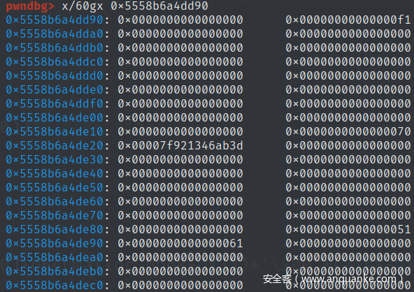 审计漏洞点,发现可申请的chunk大小只有0x71,0xf1,0x21。所以可以想到用0xf1的unsorted bin泄露地址,利用0x71的chunk进行fastbin attack。