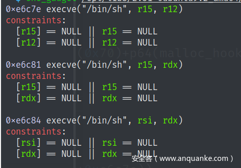 使用第一个one_gaget,调试发现,执行到one_gadget时,r15 = 0 , r12 = size。