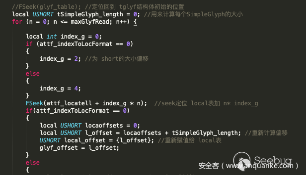 这里每次获取到tSimpleGlyph的长度后,得重新定位到loca表设置正确的offset,这样才能生成能够被解析的结构