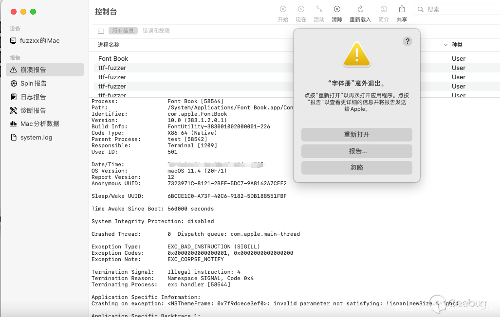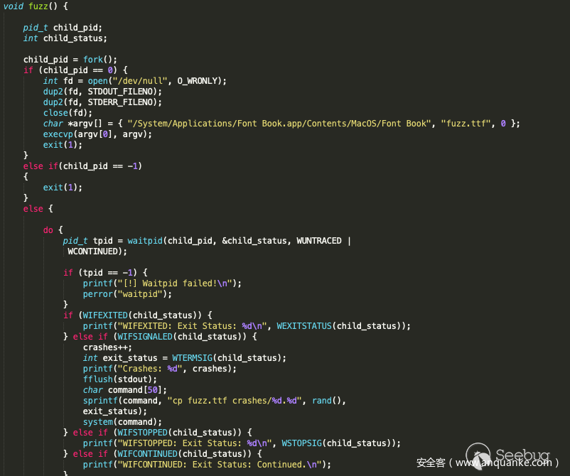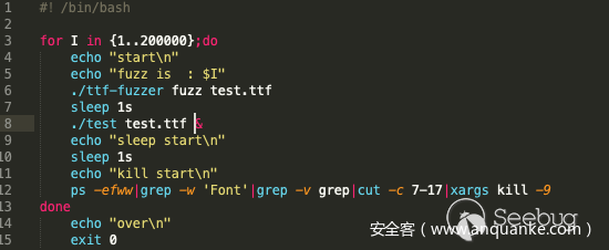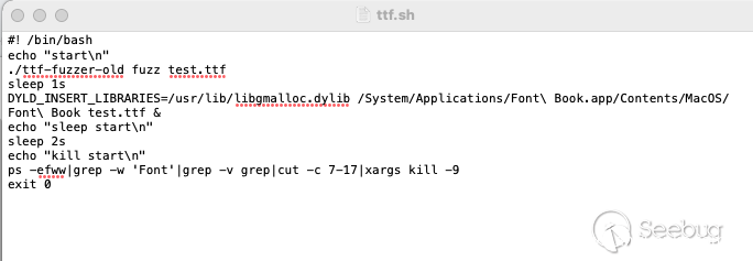 既然字体生成成功了,那就开始试水了噻,我打算直接fuzz macos自带的字体册/System/Applications/Font Book.app/Contents/MacOS/Font Book,我写了个简单的启动shell: