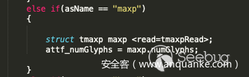 定义好maxp后,就可以获取到maxp.numGlyphs的个数了