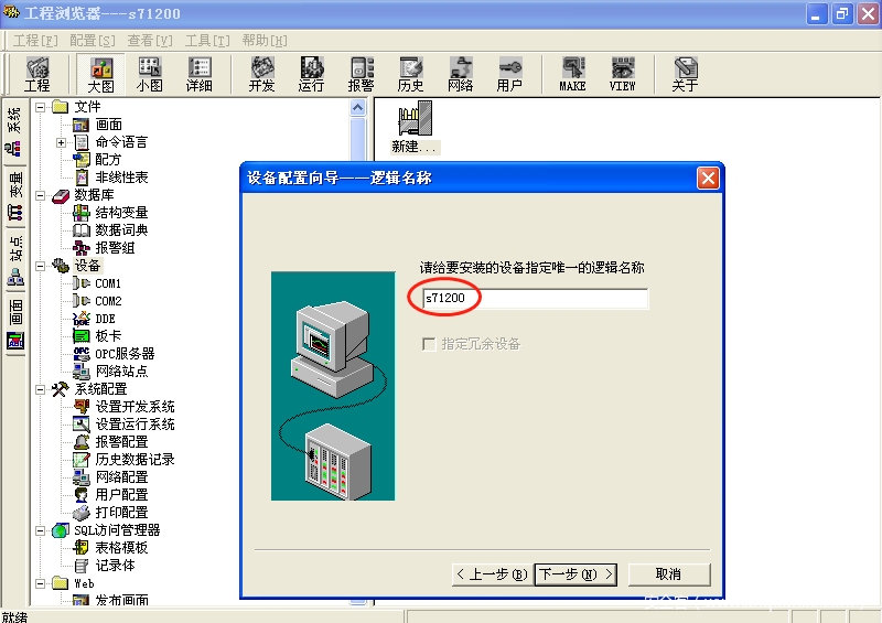 4)设置代号也就是通讯名称,这里命名s71200,可以自定义,一般根据设备名称来命名,如下图: