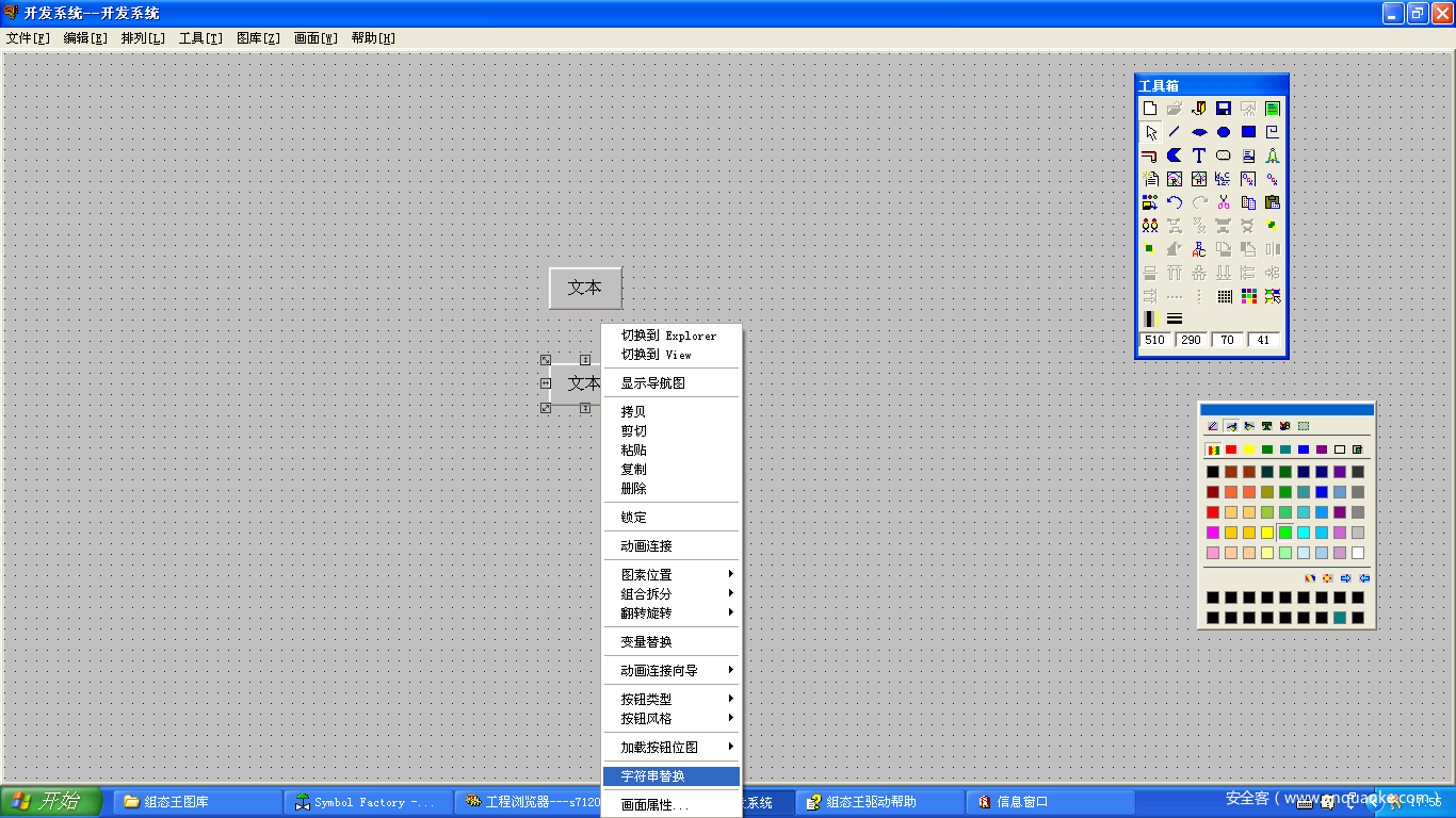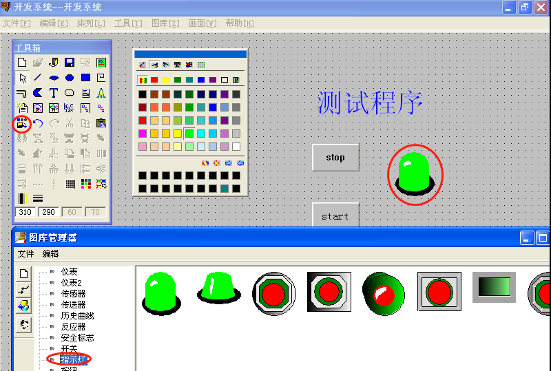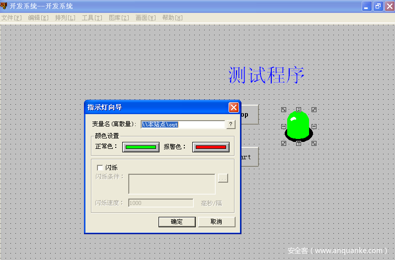 11)在s71200画面下,再增加指示灯,连接变量out,当out为1显示绿色,值为0显示红色,如下图: