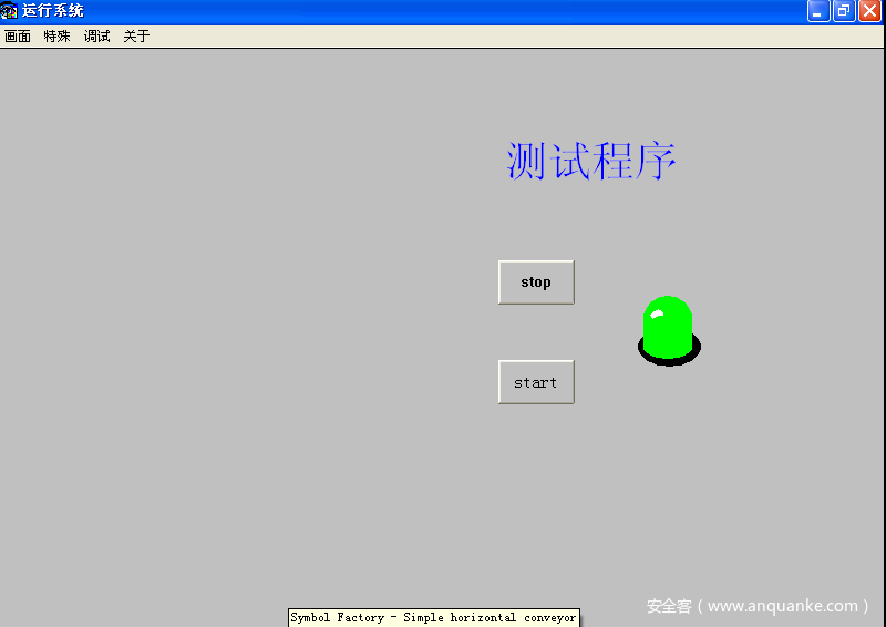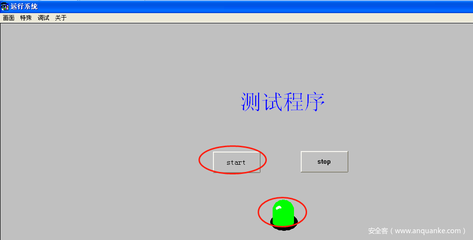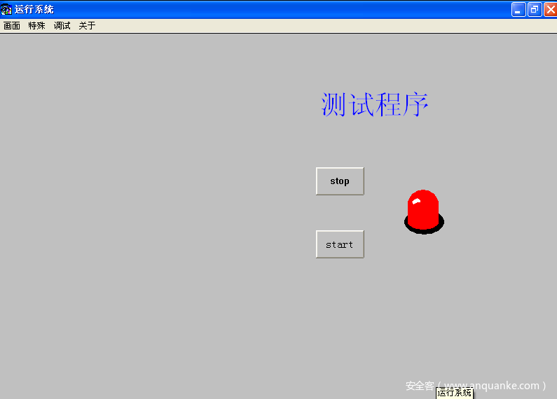 3)在xp虚拟机中让测试程序处于运行状态下,点击start按钮,,指示灯点亮,如下图: