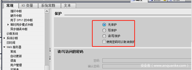 4)通过下图我们知道这个PLC未做任何的保护措施: