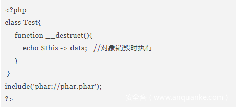 虽然在创建PHAR文件时后缀是固定的,但完成创建后我们是可以修改phar的后缀名的,例如修改成.jpg,当执行include(‘phar://phar.jpg’);时也可触发反序列化。