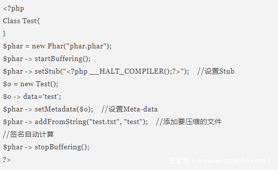 生成phar文件代码: