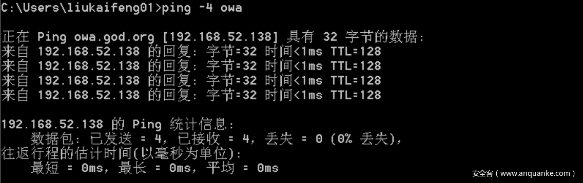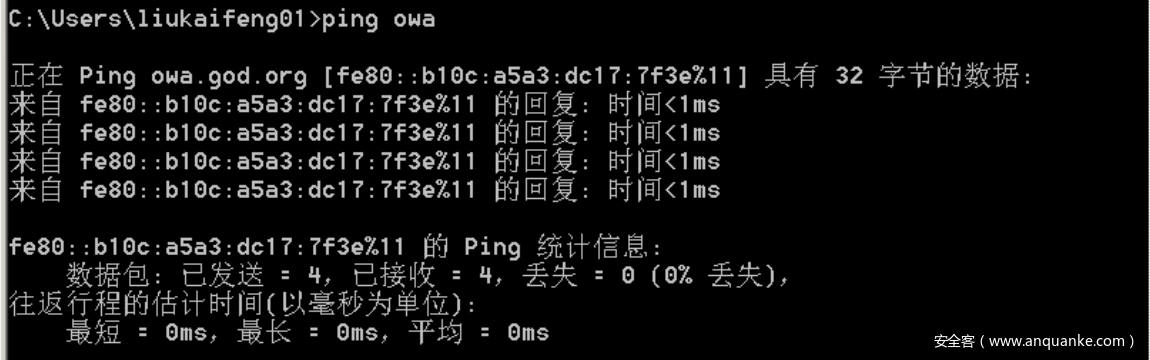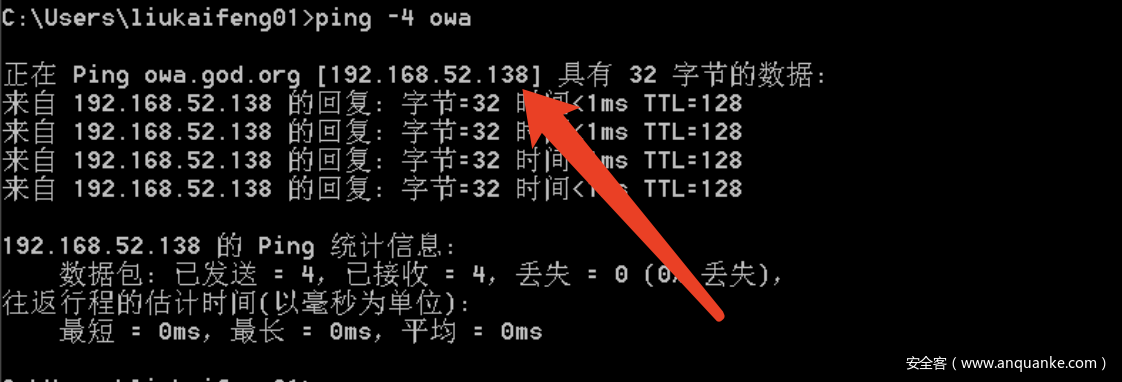 可以看见使用ping命令获取到的是ipv6的地址,所以我们需要使用ping -4