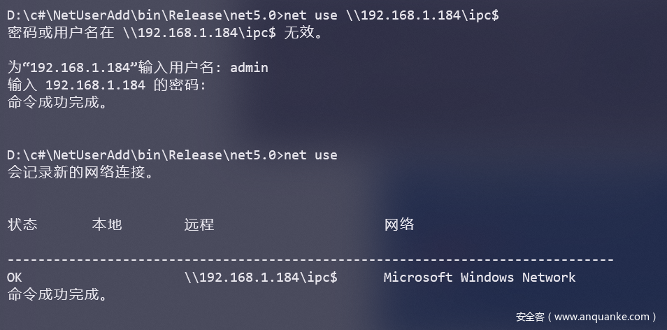 在建立与administrator账户的ipc连接后,终于执行成功。