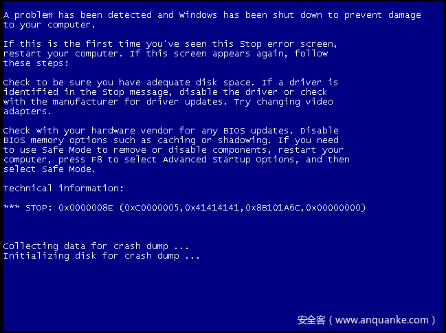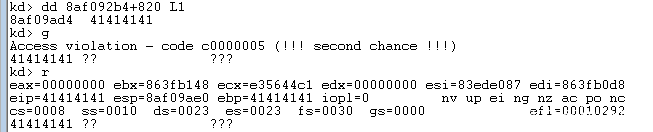 其他部分与上节思路基本一致,不再赘述。笔者构造的Exploit可以于目标虚拟机中执行,修改CR4及替换Token完成后恢复原执行环境,崩溃如下: