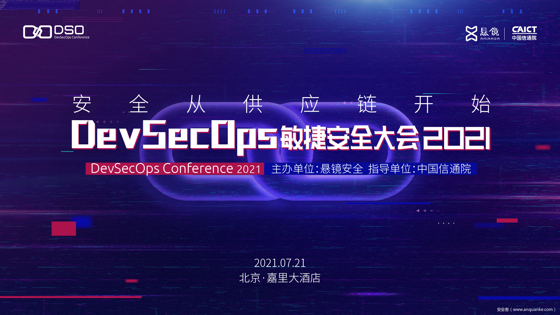 2021年7月21日,由中国信息通信研究院(CAICT)指导、悬镜安全主办、腾讯安全协办的中国首届DevSecOps敏捷安全大会2021(DSO 2021)将在北京举行。首届DevSecOps敏捷安全大会2021(DSO 2021)将于2021年7月21日在首都北京举行。大会以“安全从供应链开始”为主题,寓意安全基础决定“上层建筑”,在云原生环境下为软件供应链注入覆盖全流程的安全属性,从源头做风险治理。