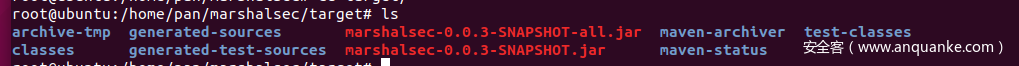 marshlsec下载后,进入文件目录执行sudo mvn clean package -DskipTests,完成后会在目录的target目录中发现两个jar包