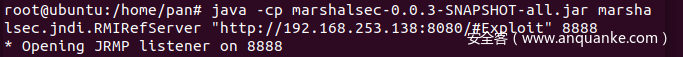 8888 可为任意端口# java -cp marshalsec-0.0.3-SNAPSHOT-all.jar