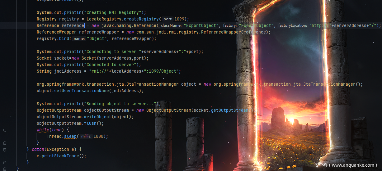 注册一个RMI服务,将恶意类作为被请求的对象,创建一个reference对象,将恶意类封装为reference对象,至于为什么要封装为reference对象请查看上文中RMI的详细介绍。