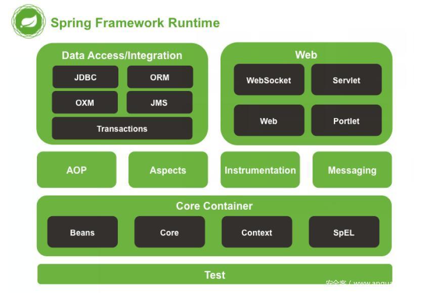 Transactions:即事务对应的jar文件为spring-tx-xxx.jar,这也正是产生漏洞的Jar文件。在整个Spring核心模块中,它位于模块图的左上角,负责跟数据库交互的Dao层。而跟数据库交互的过程中必然会出现事务的问题,spring-tx-xxx.jar则负责对整个事务的处理。