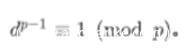 对于质数p,任意整数a,均满足:ap-1≡1(mod p)