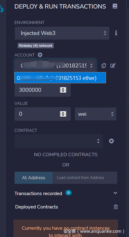 点击At Address按钮 (如果按钮灰色 根据下面的报错提示 请检查合约地址是否正确 上面的步骤是否正确完成)