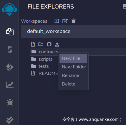 打开网站右键新建一个文件 命名为*.sol 例如test.sol