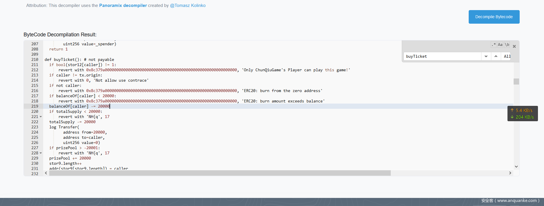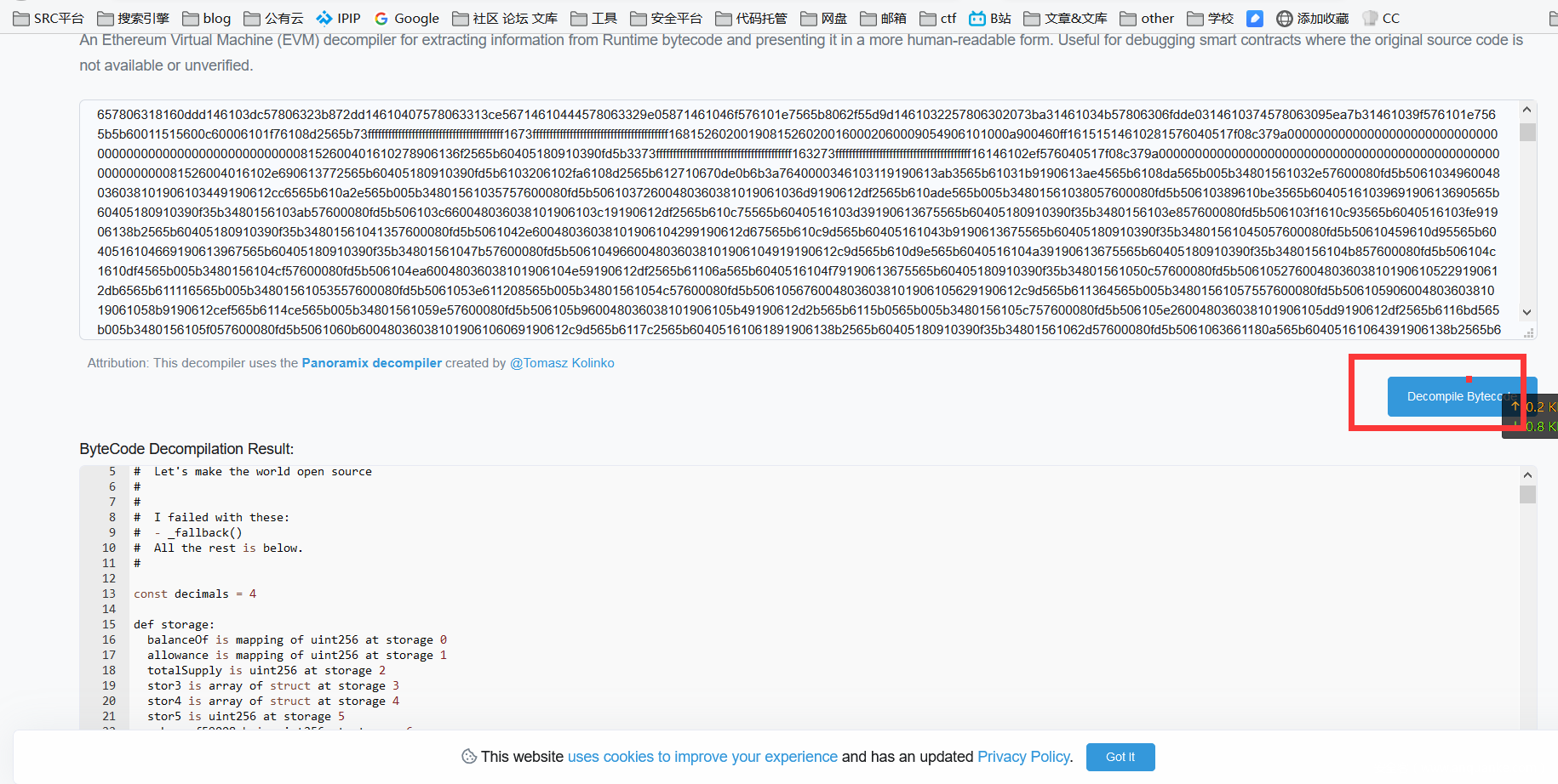 区块链浏览器自带的反编译工具 反编译合约代码