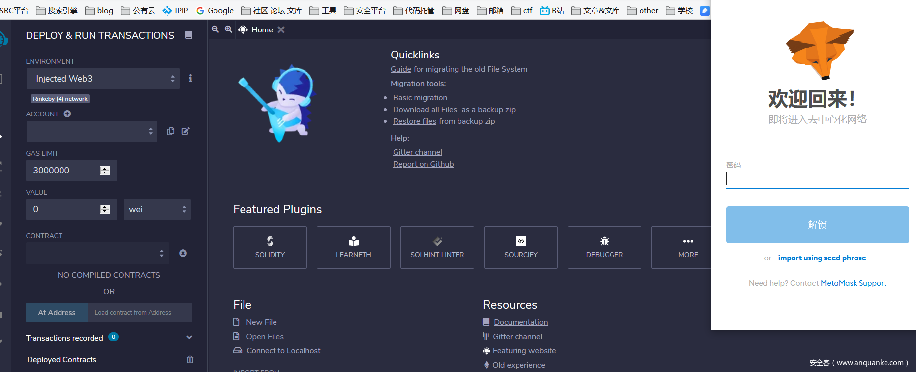 准备好 Rinkeby 测试网络的 ETH 用作手续费转入所注册后给的 ETH 地址中