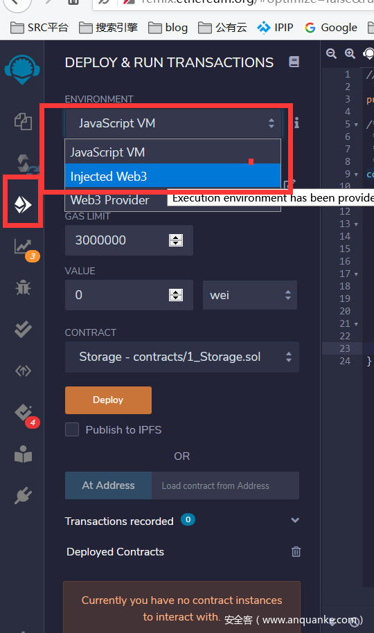 环境选择 Injected Web3