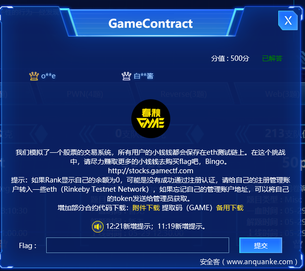 今年春秋杯春秋杯出了一到特别的杂项题 还是个从来没接触过的ETH合约的CTF题 通过查找大量文章找到了ETH合约的调用方法 这里详细写出解题过程以便后人学习ETH合约的调用