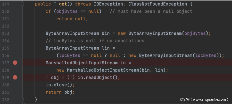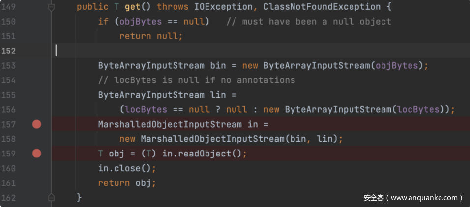 下面看MarshalledObject的操作,凑巧的是get方法也是getMemberMethods获取的第一个方法,直接就可以配合objBytes属性进行填充。