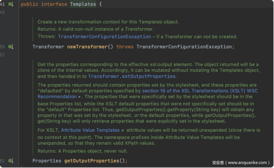 该利用链采用JDK7u21的基础利用框架,在编写payload的时候也踩了一些坑,在这里简单记录一下。因为用到了JDK7u21利用链,但是该链采用了com.sun.org.apache.xalan.internal.xsltc.trax 中的关键命令执行链TemplatesImpl,然而该类被上述的黑名单中被限制所以不能使用。下面利用MarshalledObject类构造他的兄弟链。