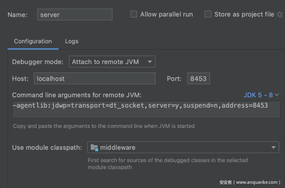 脚本会自动开启8453调试端口,配置idea并进行连接