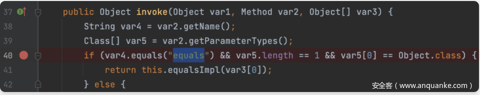 当代理类调用equals方法时会首先调用invoke方法,进而调用了equalsImpl方法。那么下面的问题就是如何让hash产生碰撞。