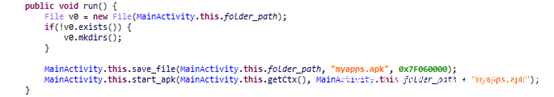 恶意样本运行后会直接从raw目录下释放myapps并保存为myapps.apk,同时会运行此正常的apk应用。