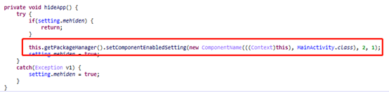 当运行了真实的正常apk后,则会隐藏恶意程序自身图标,在后台进行远控操作,这样呈现给用户的效果是安装了一个正常的应用程序