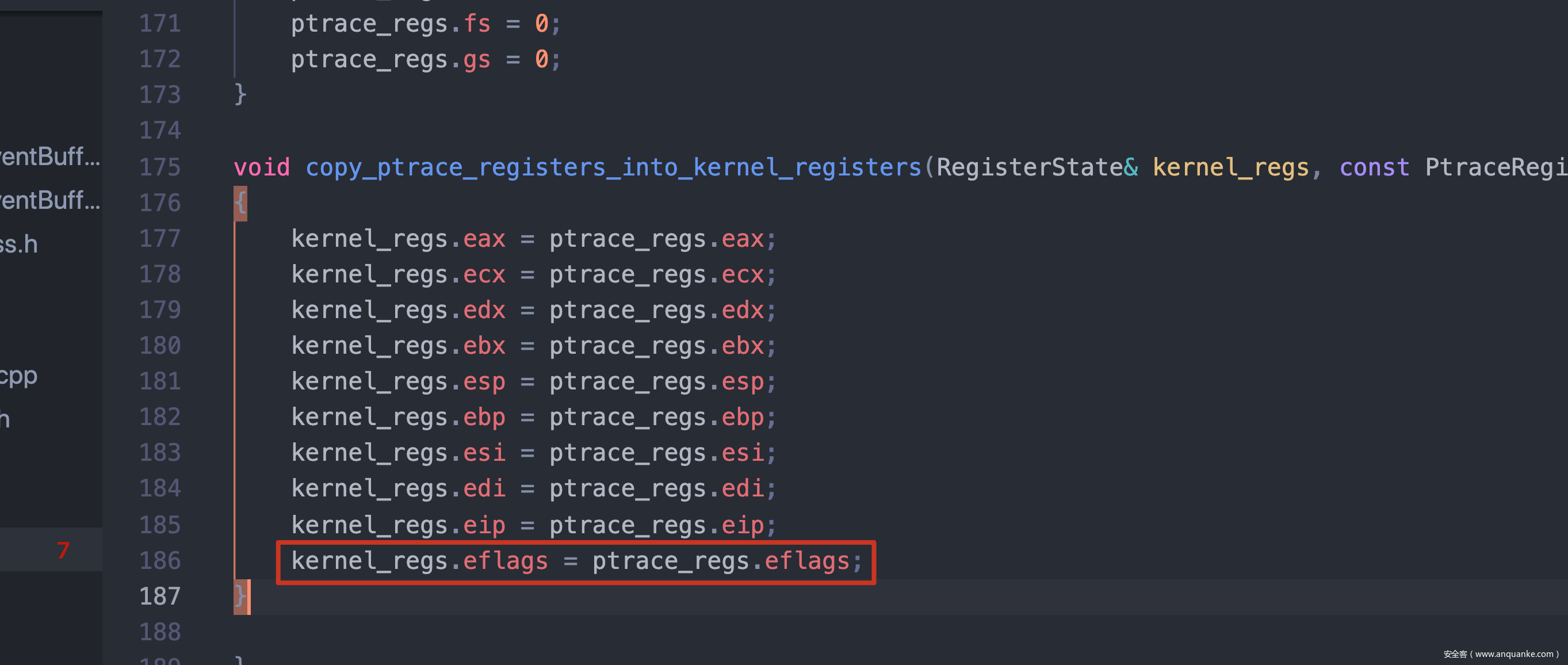 漏洞成因是:Ptrace传入regs组未加任何检查便传递给kernel_regs,导致可以任意修改Kernel寄存器值