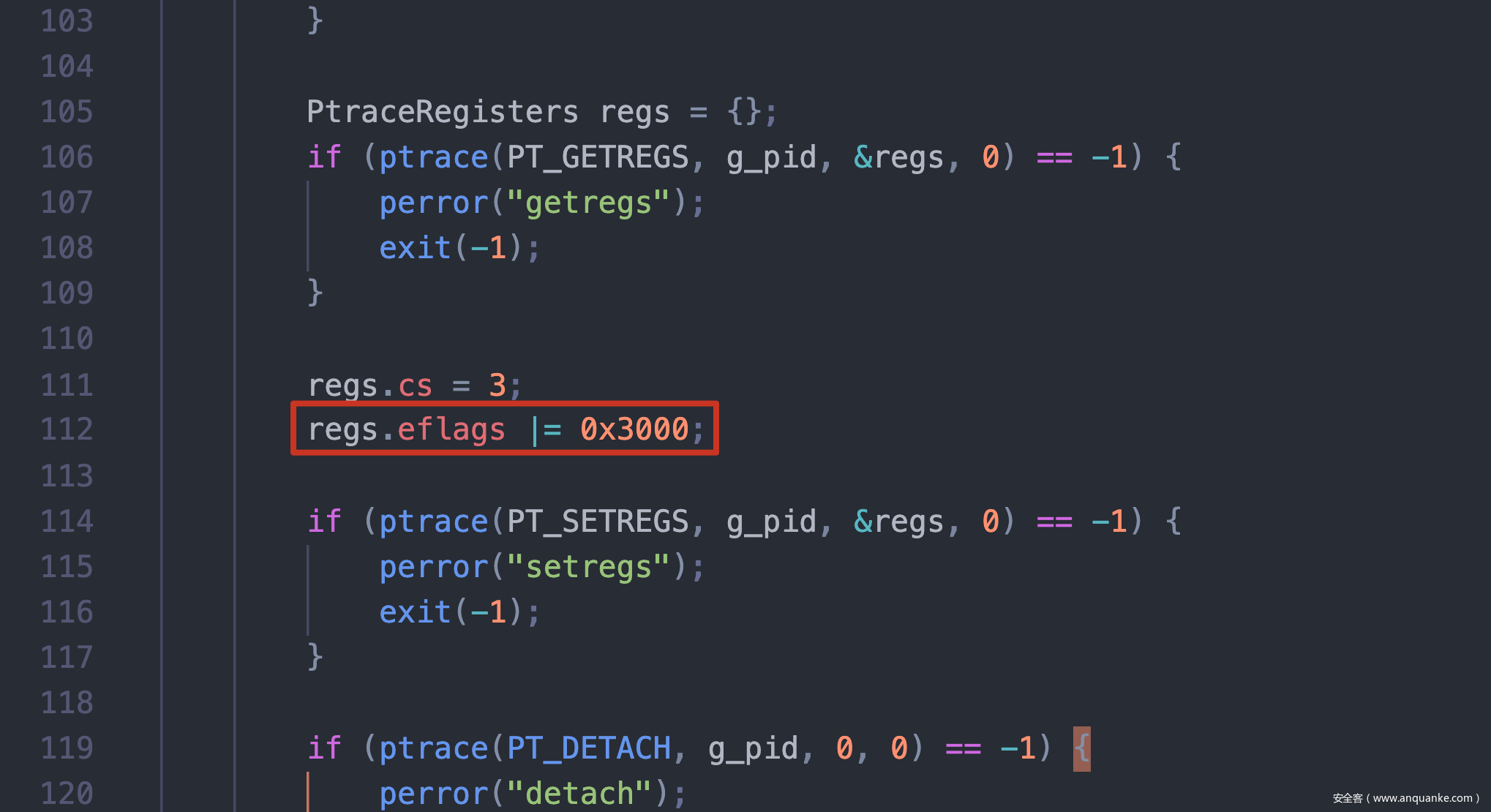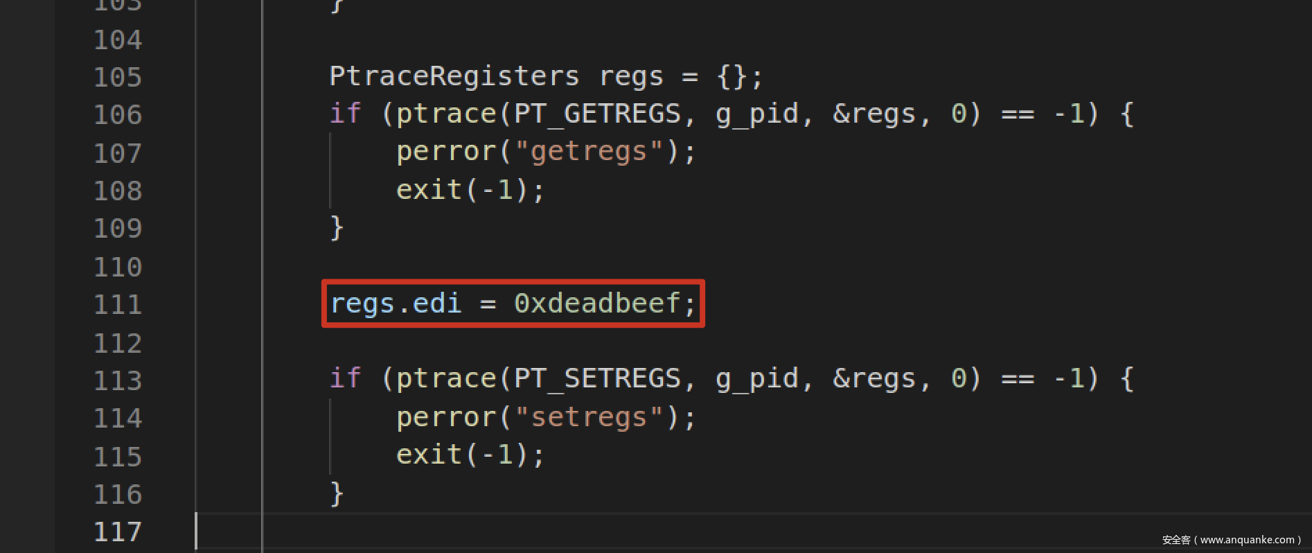 if (ptrace(PT_SETREGS, g_pid, ®s, 0) == -1) {