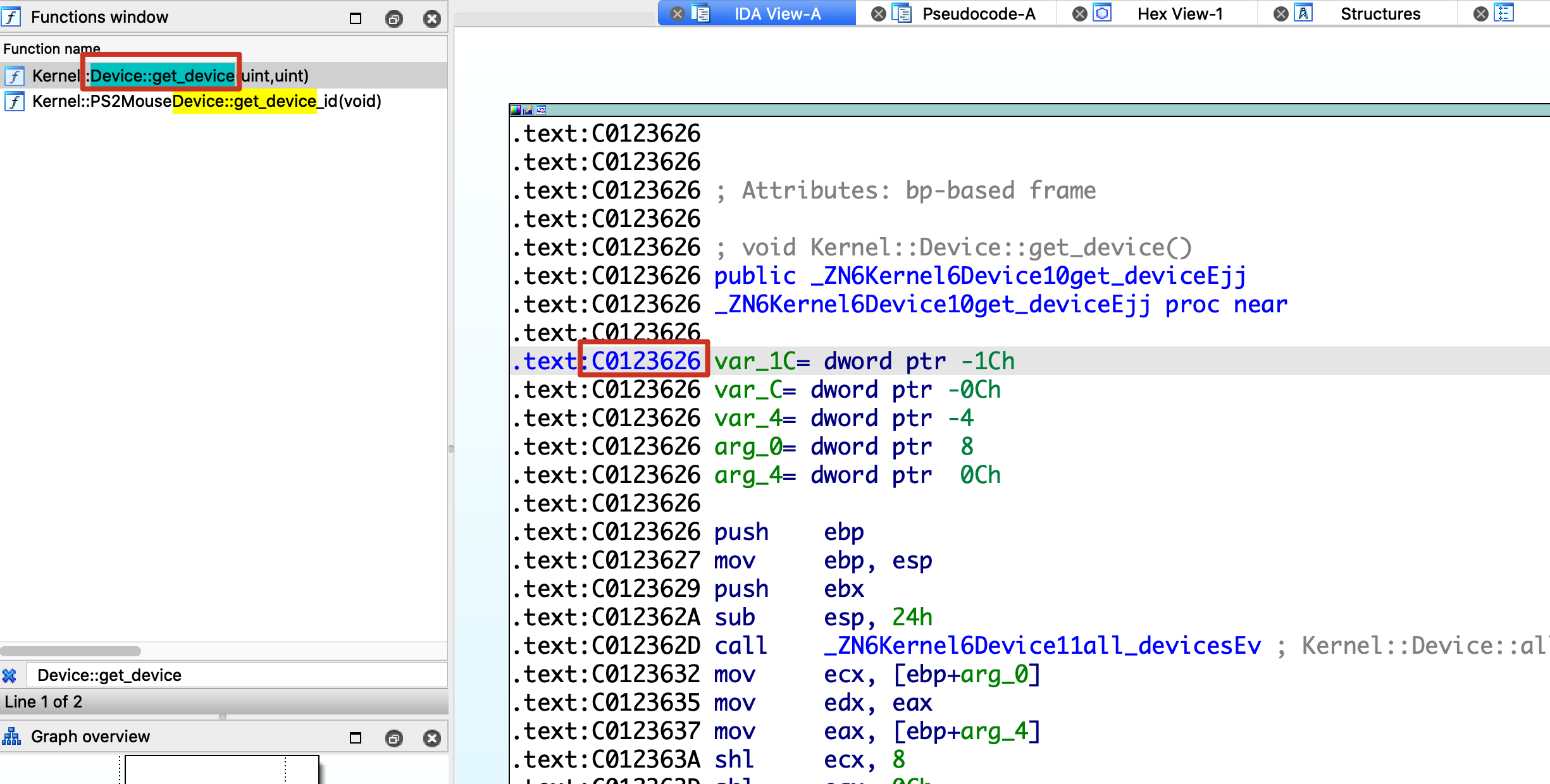 可以看到Device::get_device、DiskDevice::read方法位于Kerneland,Userland没法调,也就是没法利用wisdom1的方法去读flag
