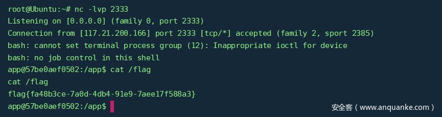再访问 /status 路由,利用污染后的结果进行命令执行,成功反弹 Shell 并得到 flag: