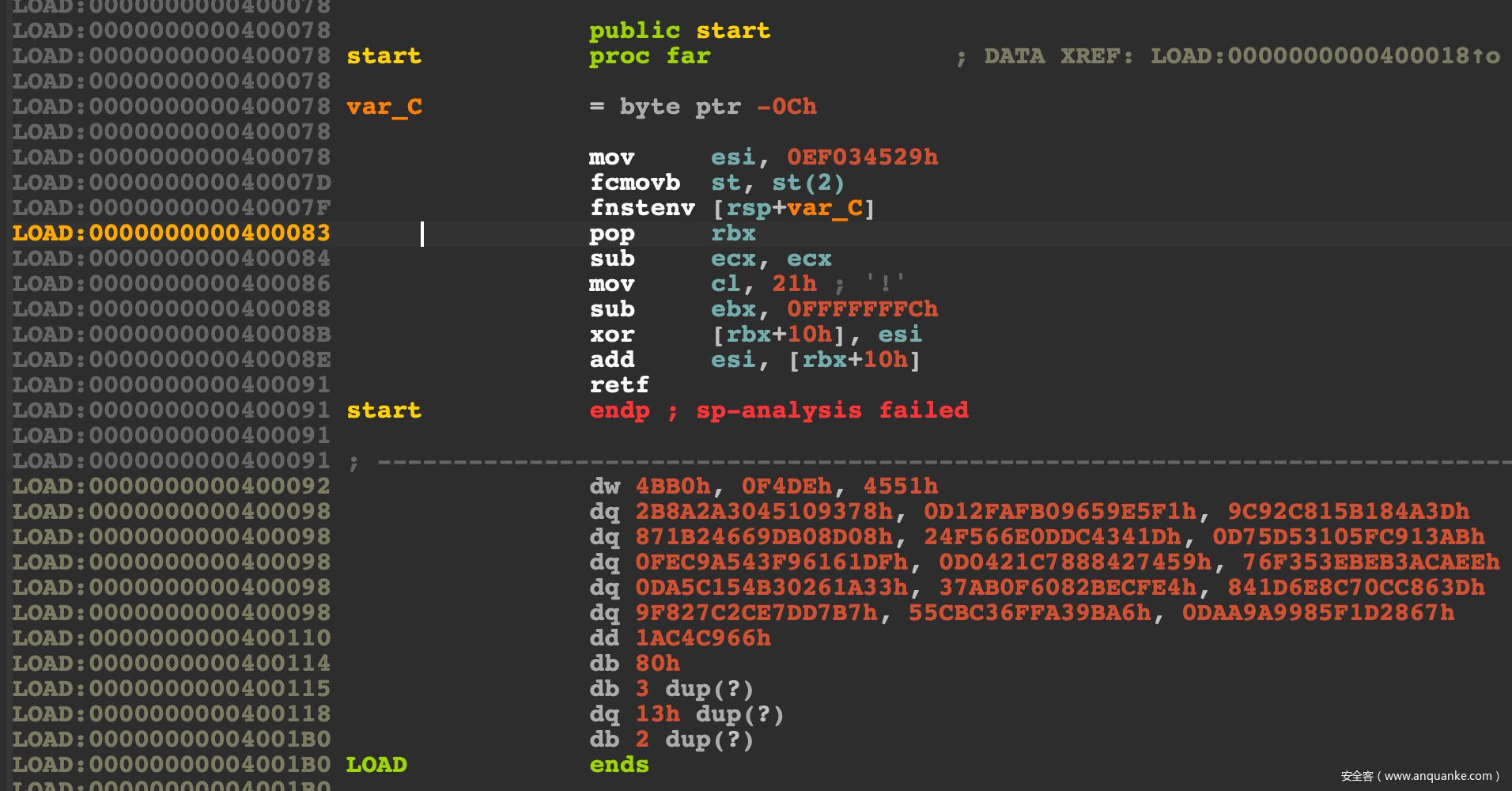 可以看到 \xd9\x74\x24\xf4 是一个硬编码,这就是一个特征。同时fpu 指令也是有限的: