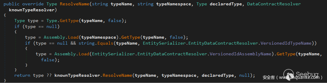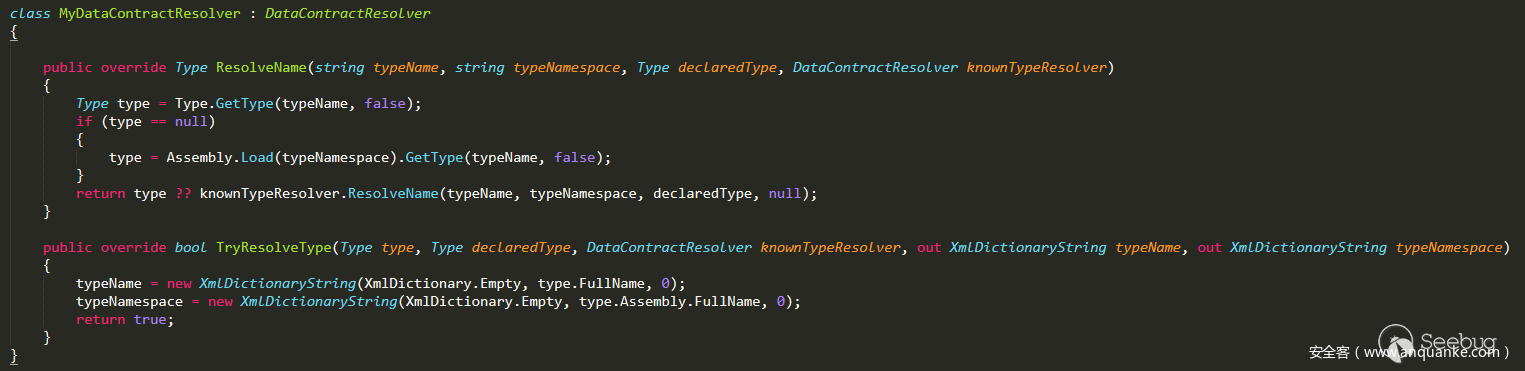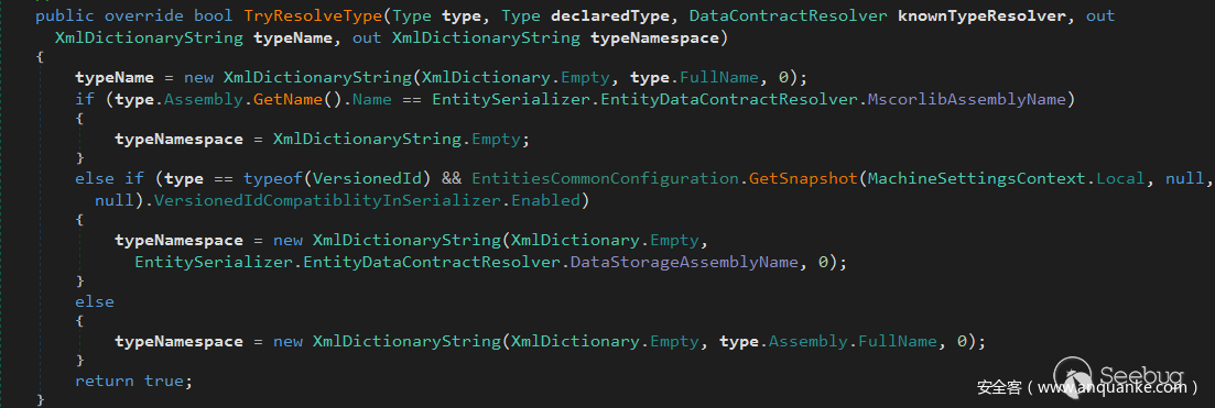 比如,CVE-2021-282482 中 EntityDataContractResolver : DataContractResolver 对这两个方法的实现如下: