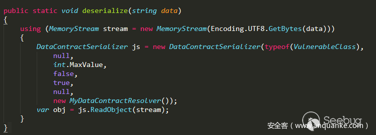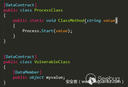 VulnerableClass 是模拟的可能被攻击的类型,该类型中有一个字段为object 类型。