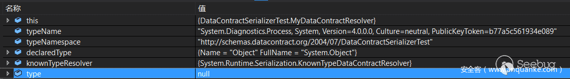 如果此时在ResolveName 下断点, 会发现 typeName为 Process,typeNameSpace 则由 xmlns:d 来指定。